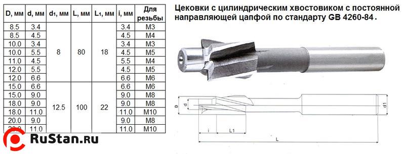 D x d x L (диаметр реж. части х диаметр цапфы х общая длина цековки), под М5, диаметр хвостовика 8мм.