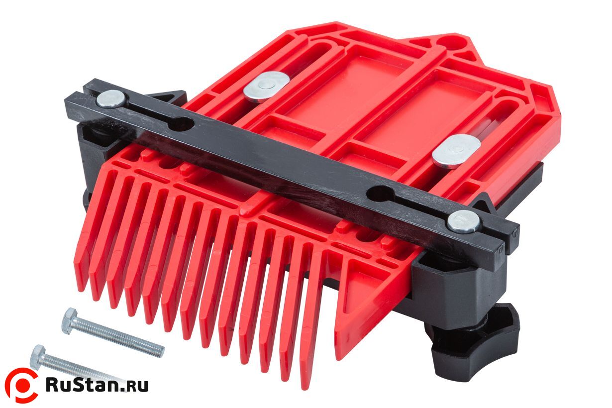 Пластиковые прижимы могут использоваться на фрезерных и пильных станках для фиксации заготовки сверху и сбоку совместно с другими направляющими упорами. Упругие пластины гребенки обеспечивают равномерное усилие прижима и блокируют обратный ход заготовки. Установка на станок производится креплением в Т-образном пазу с размером 19х9,5 мм штатно или 9х9,5 мм при удалении с крепежных винтов направляющей планки.