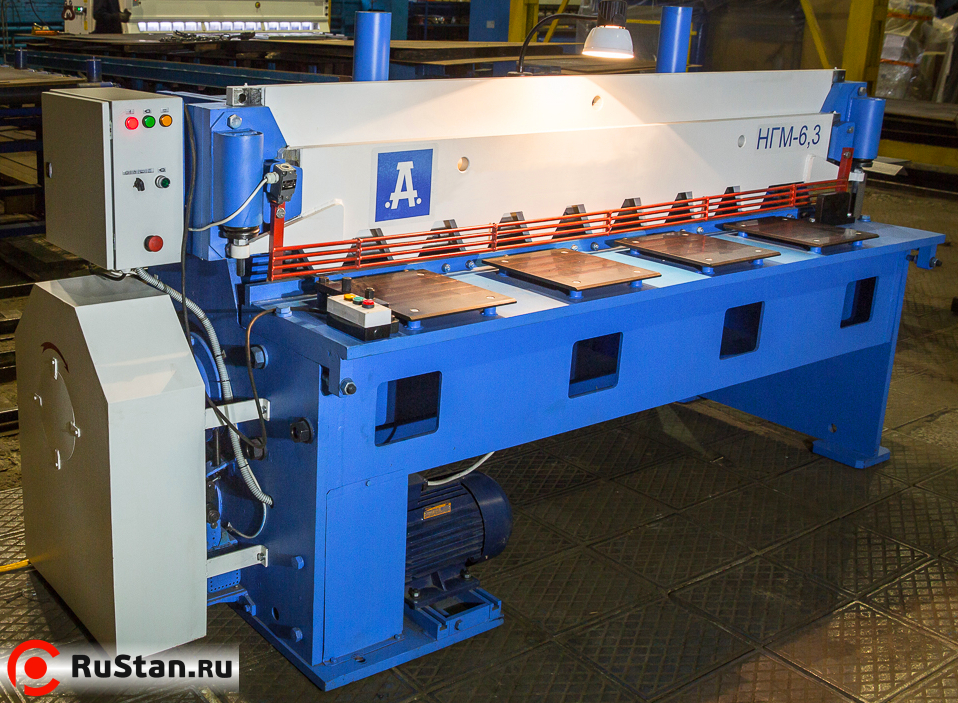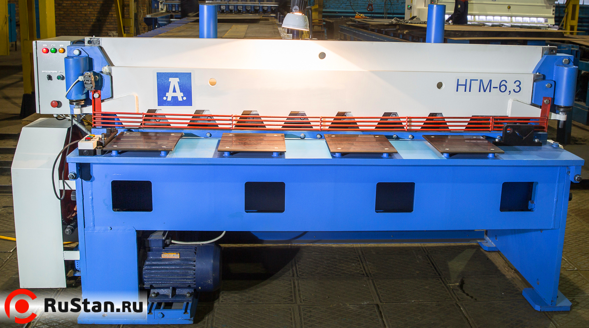 Электромеханические гильотинные ножницы НГМ-6,3 это металлообрабатывающий станок, который относится к кузнечно-прессовому оборудованию. Эта установка позволяет качественно и быстро получить металлические заготовки заданного размера из листового металлопроката. Установка для резки металла НГМ-6,3 применяются для прямой продольной или поперечной резки листового и полосового металла.