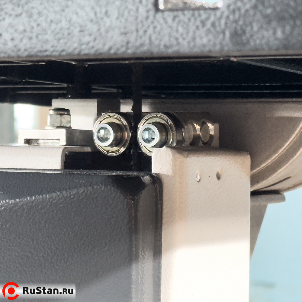 Вылет верхнего блока направляющих подшипников устанавливается в зависимости от толщины разрезаемого материала. Для получения точного и качественного среза, расстояние между верхним блоком направляющих подшипников и обрабатываемым материалом должен быть минимальным, но при этом заготовка должна свободно перемещаться на столе (рекомендуемый зазор между верхним блоком направляющих и заготовкой 3 – 5 мм)
