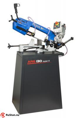 Универсальный ленточнопильный станок ARG 130 super K малых размеров, находит широкое применение в слесарных и ремонтных работах, удобен при проведении местных монтажных работ. Жесткая конструкция отлита из серого чугуна. В отличие от базовой модификации ARG 130 подача рамы происходит под тяжестью собственного веса с возможностью регулирования усилия на ручке подачи за счет специальной пружинной системы. По окончании реза вращение пильной ленты прекращается автоматически. Для более быстрого распила заготовок малого сечения пружинная система настраивается для ручной работы, ослаблением усилия пружин. Рама станка поднимается вручную.