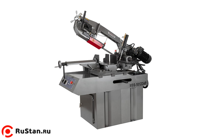 Модель MBS-1012DAP имеет регулируемую направляющую для регулировки прохода ленточного полотна в зависимости от формы заготовки и ее диаметра. Направляющие блоки осуществляют позиционирование полотна непосредственно под прямым углом к поверхности обрабатываемой заготовки. Максимальная стойкость ленточного полотна обеспечивается подачей СОЖ в зону резания.