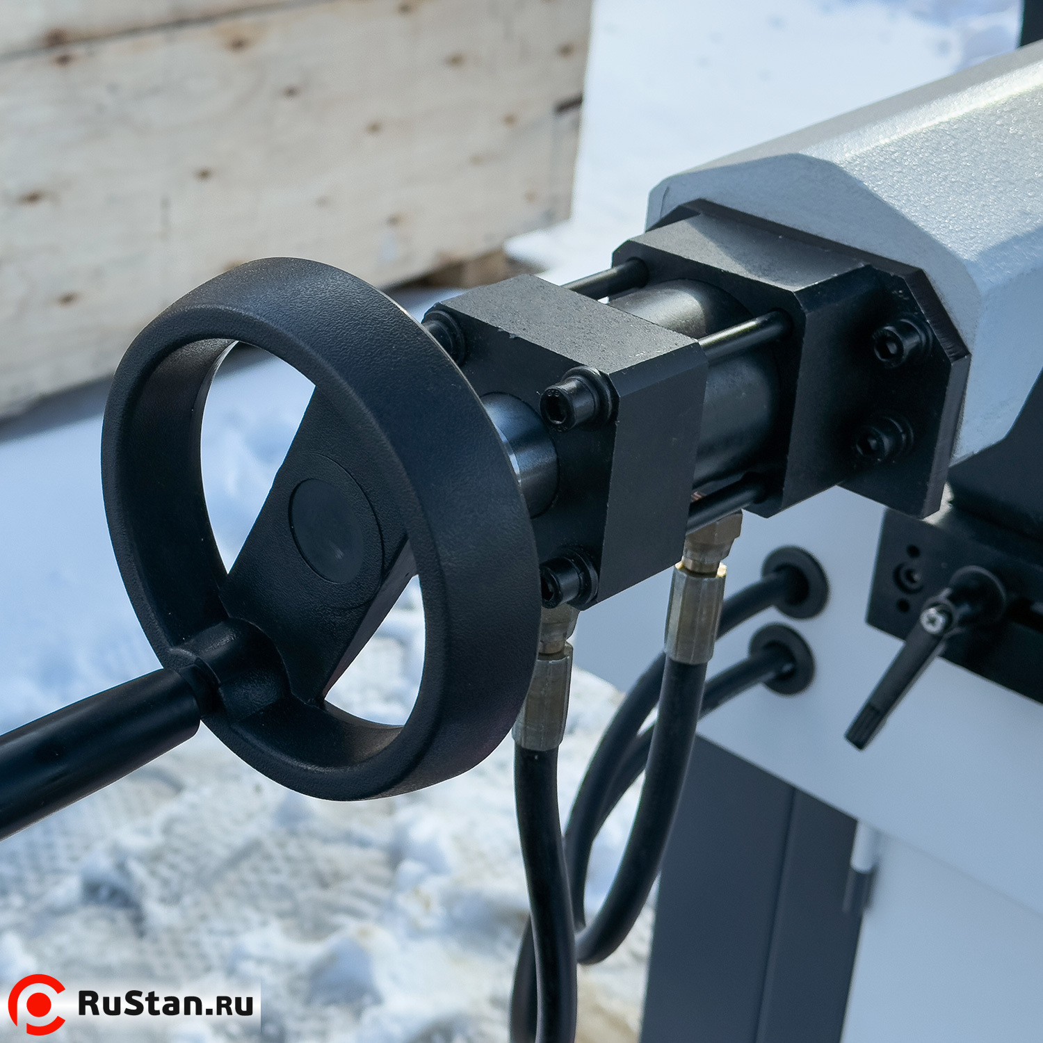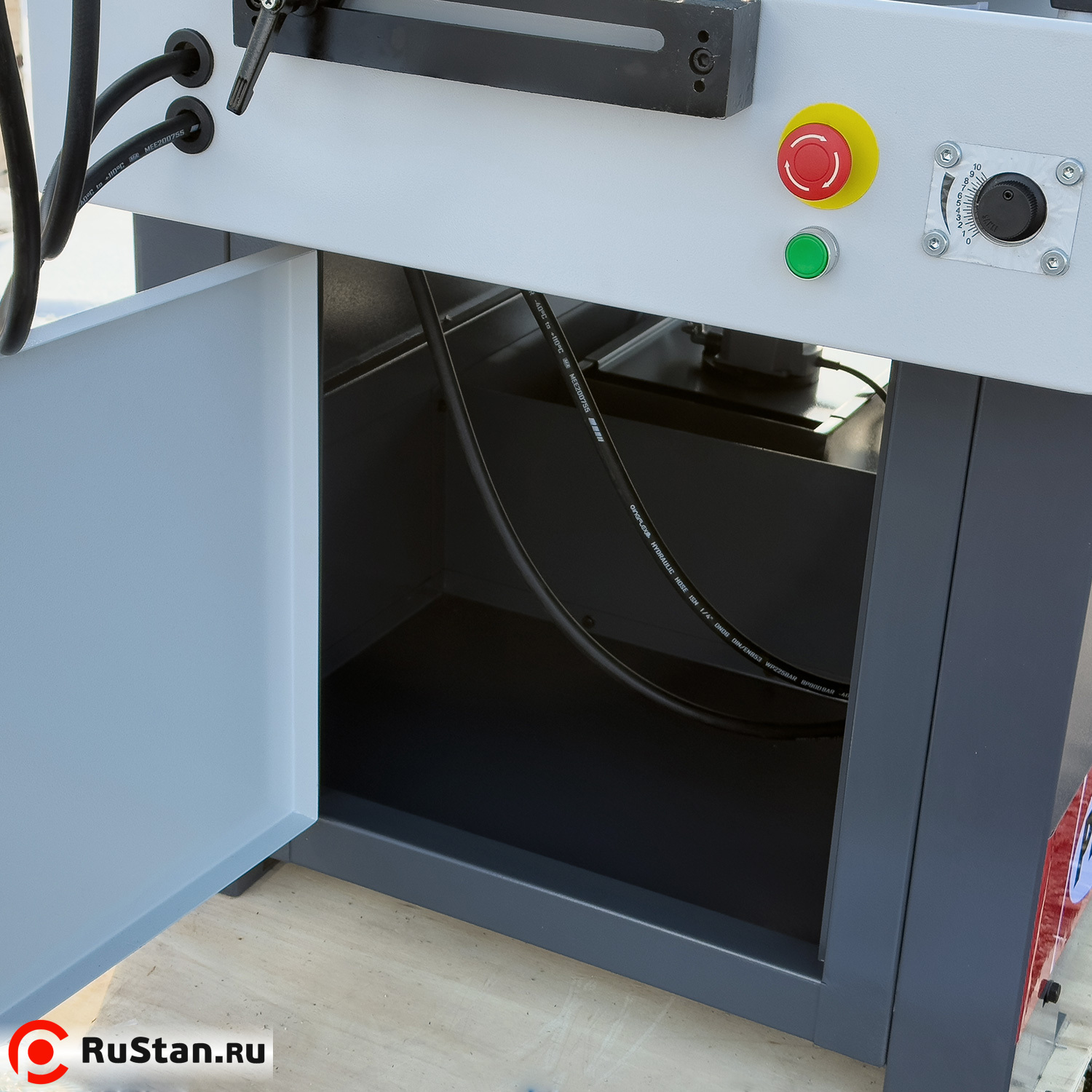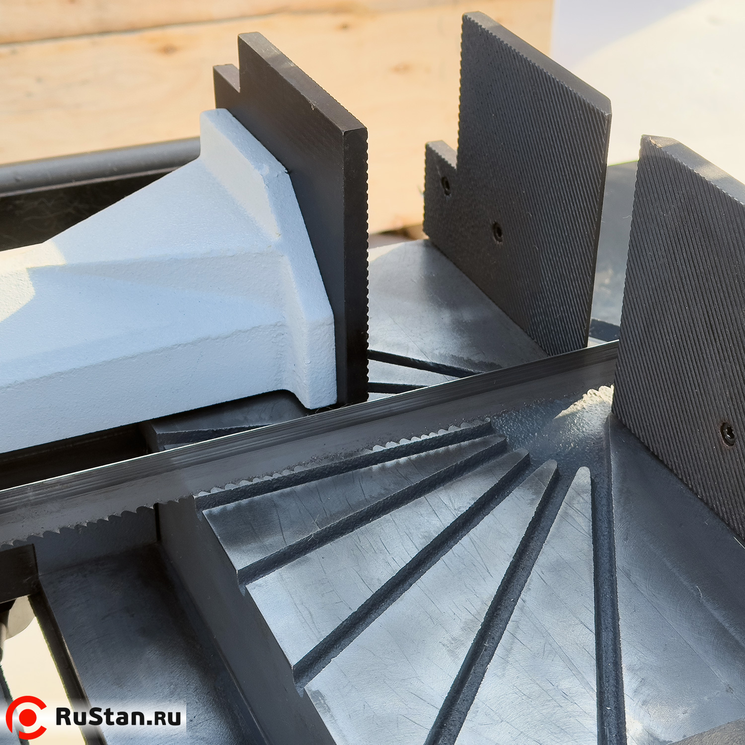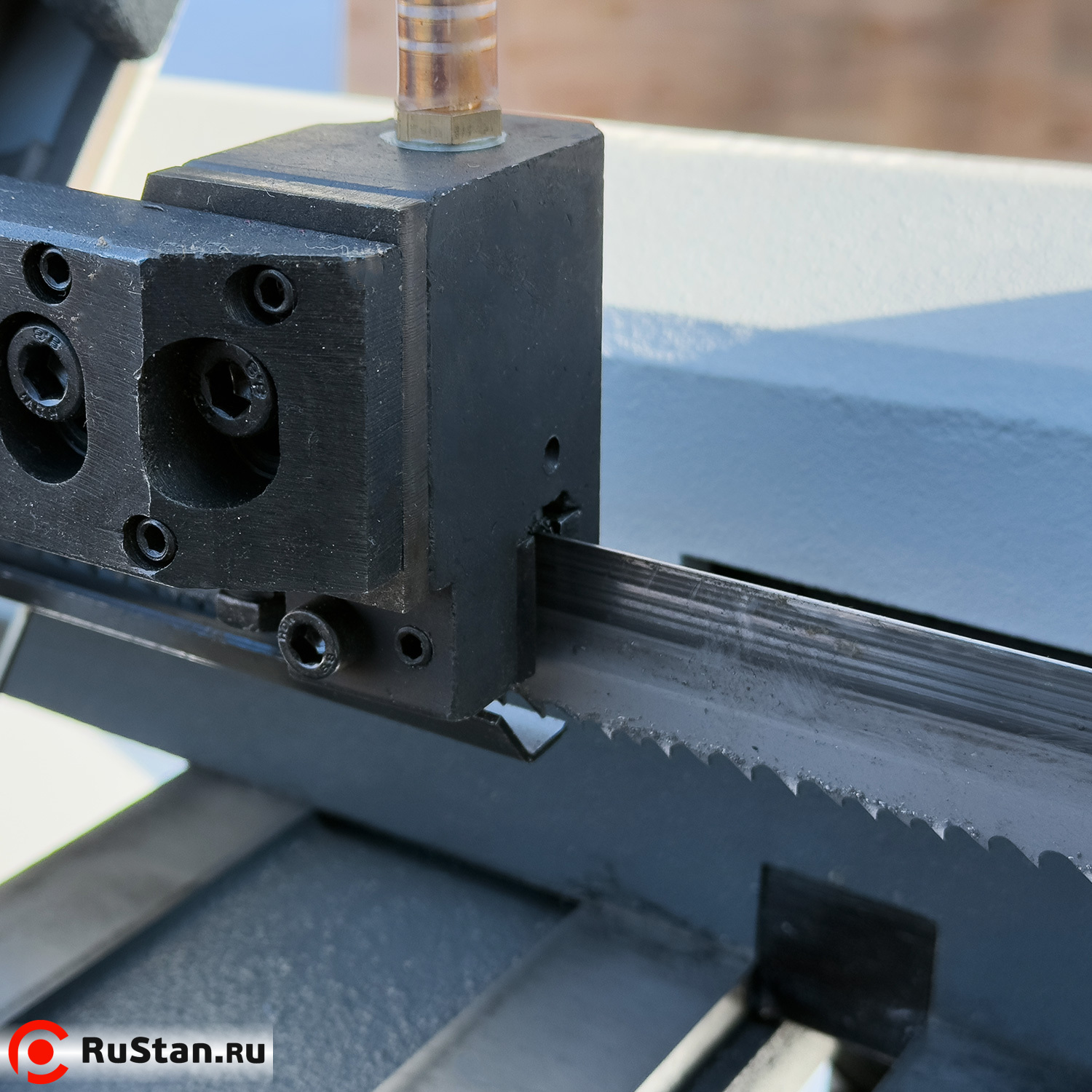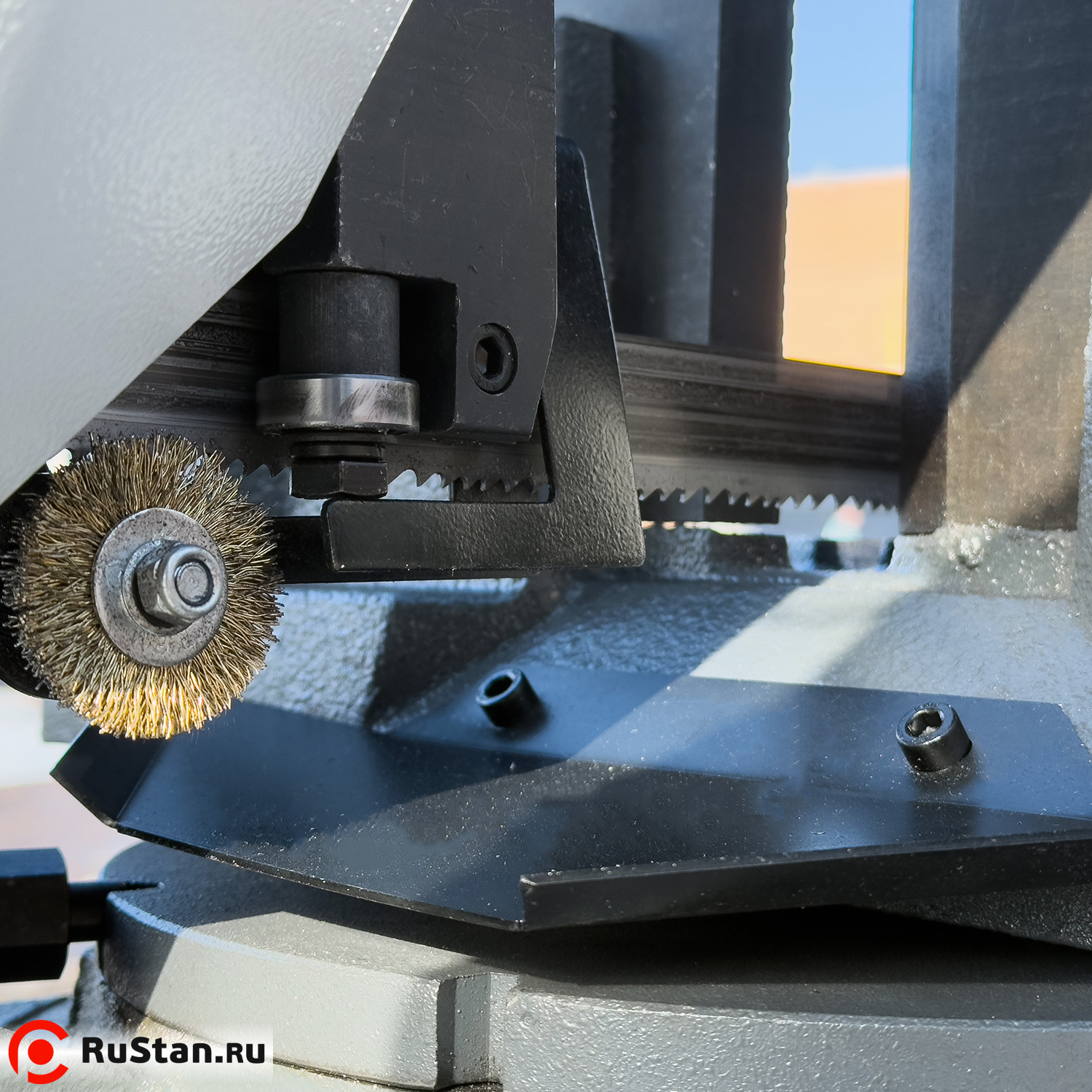 Станок состоит из чугунных деталей с металлическими кожухами. Эта комбинация материалов обеспечивает достаточную жесткость станка при максимальном резе. Пилу можно настроить для резки под углом 90°/60°/+/-45°. Пильная лента приводится в действие трёхфазным двигателем. Опускание пильной рамы регулируется гидроцилиндром. Модель оснащена системой охлаждения СОЖ.