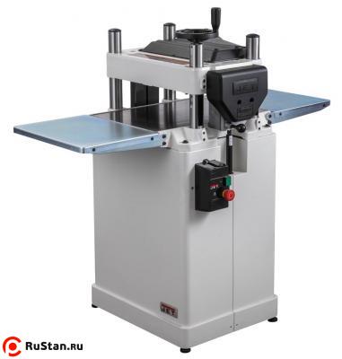 JWP-15B — профессиональный рейсмусовый станок с откидными столами, оптимальный для использования в небольших столярных мастерских. Это полностью новая современная модель, сочетающая высокие рабочие характеристики и удобство эксплуатации. К примеру, для облегчения подъема строгальной части при регулировке установлено два газовых упора, компенсирующих вес подвижной части механизма (к тому же сам узел более легкий из алюминиевой, а не чугунной отливки). Лифт производится вращением штурвала, установленного в горизонтальной плоскости непосредственно на ходовом винте одной из четырех колонн. Один оборот рукоятки приводит к перемещению на 4 мм.