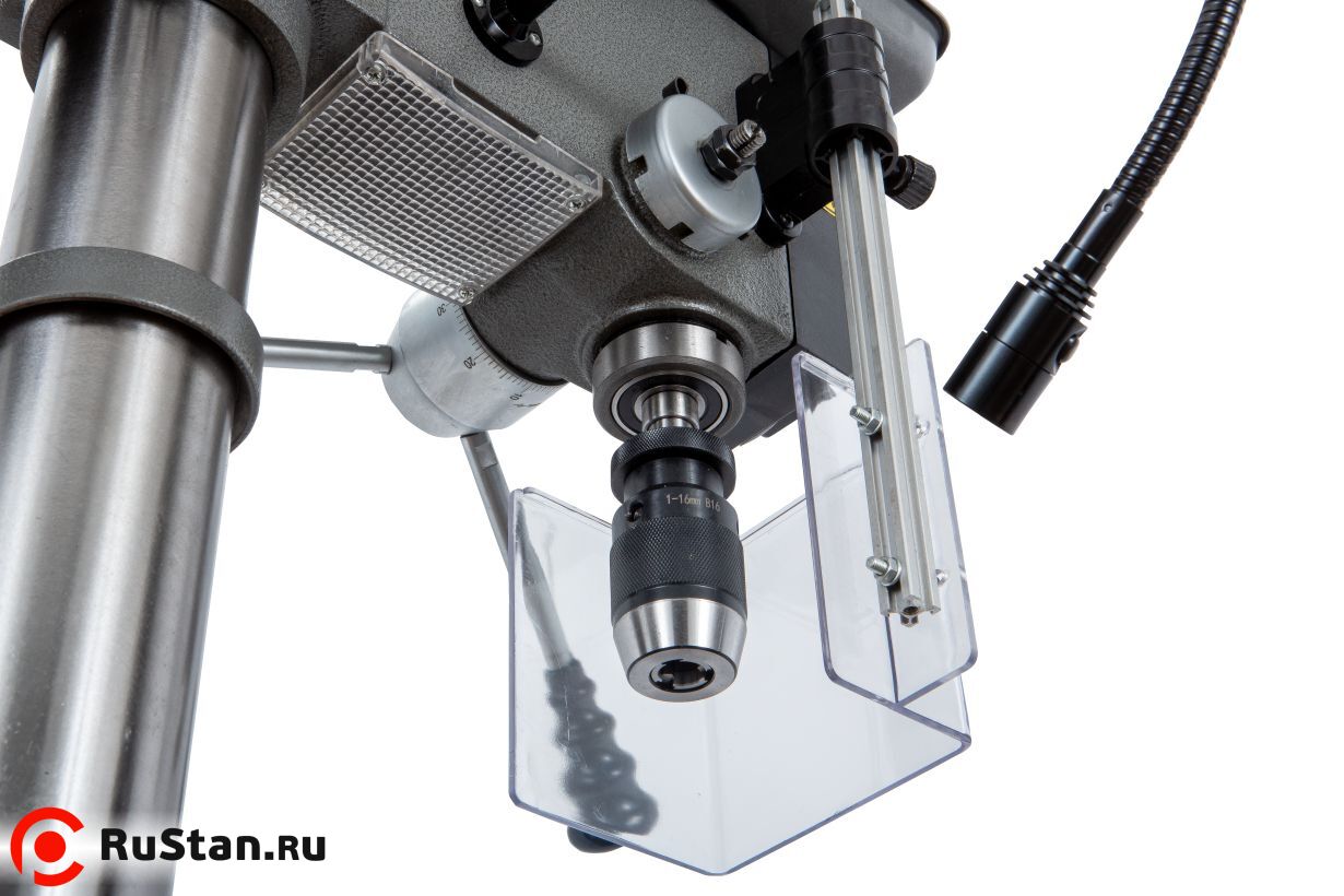Сверлильная головка позволяет сверлить отверстия максимальным диаметром до 16 мм. Конус шпинделя — МК-2. Выходная мощность приводного двигателя составляет 370 Вт.