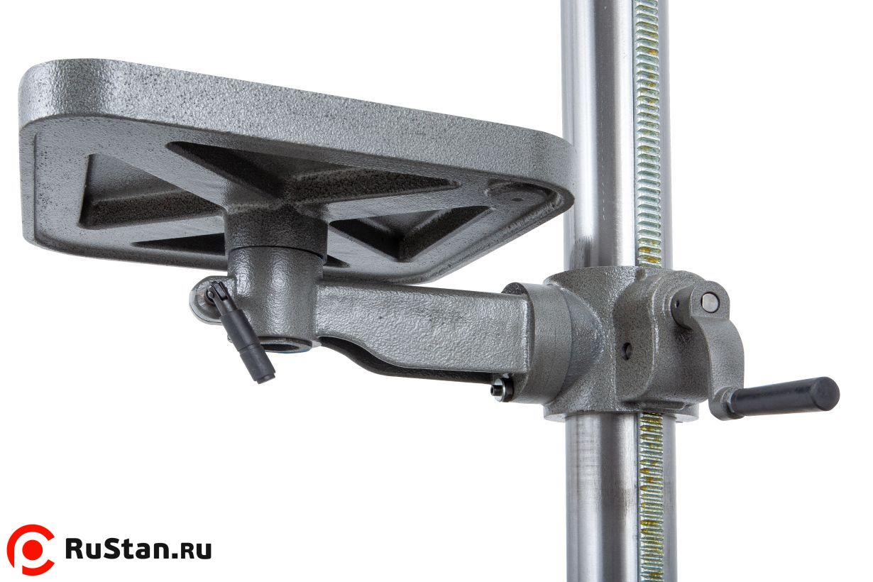 Ход пиноли шпинделя составляет 80 мм. Для контроля глубины сверления предусмотрена шкала на лимбе с миллиметровой разметкой, а также стопорный зажимной винт для ограничения хода пиноли.
