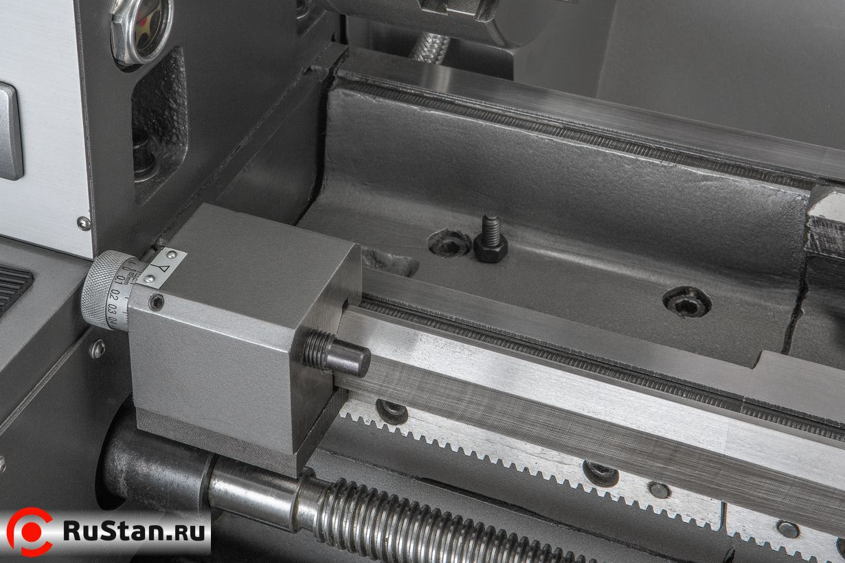 GHB-1340A DRO выполнен по двухвинтовой схеме. Для нарезания резьбы используется ходовой винт, для автоматического точения - ходовой вал. На станке возможна регулировка зазоров направляющих при помощи клиновых планок, конструкция задней бабки позволяет обтачивать конические заготовки. Для облегчения механического переключения режимов на GHB-1340A DRO применяется толчковый (импульсный) режим пуска двигателя.