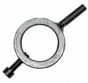 Хомутик токарный ф38 мм предназначен для придания заготовке вращения при обработке ее в центрах. Максимальный диаметр заготовки при обработке с помощью этого хомутика 38 мм.